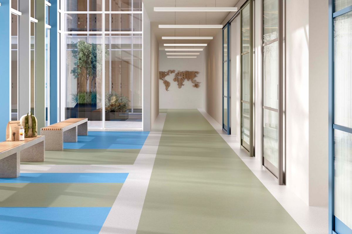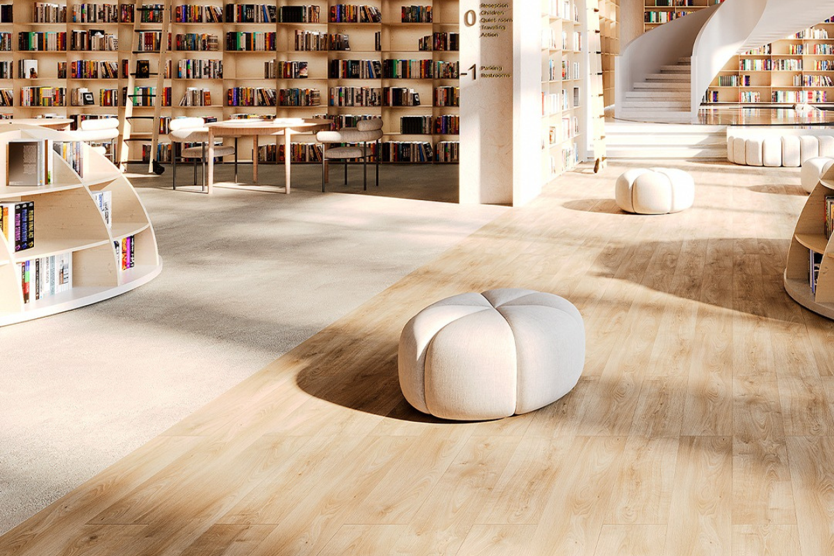 LVT-плитка IVC (Luxury Vinyl Tile), гетерогенный винил и другие напольные покрытия отличаются высокой износостойкостью, элегантным дизайном и, что особенно важно, созданы с учётом растущих требований современных рабочих пространств.